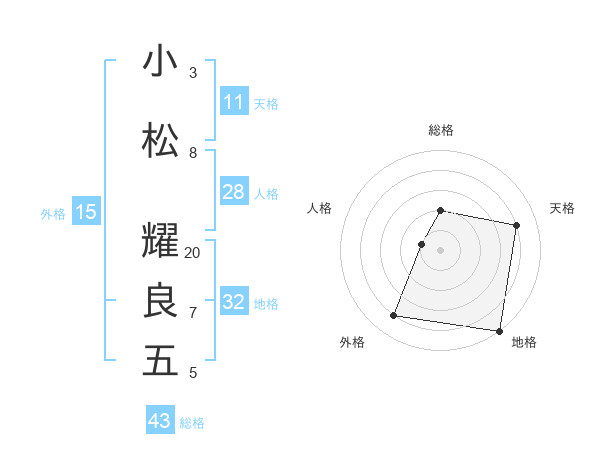 小松 耀良五さんを姓名の画数から五運を鑑定