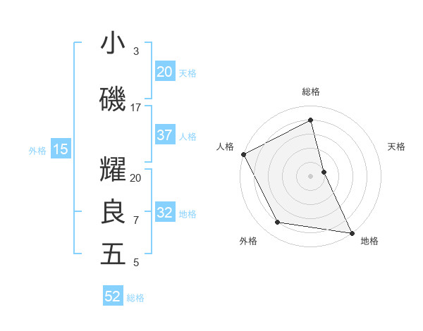 小磯 耀良五さんの総格は52画の4点!