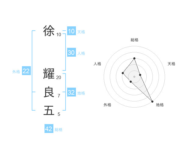 徐 耀良五さんの総格は42画の3点!