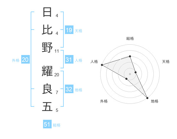 日比野 耀良五さんを姓名の画数から五運を鑑定