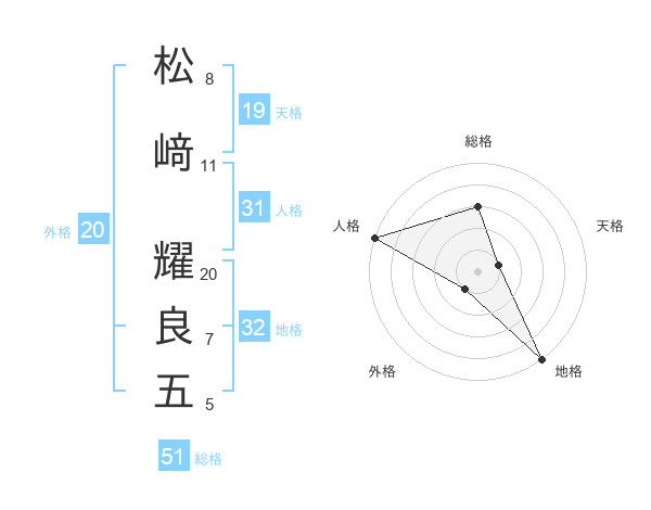 松﨑 耀良五さんの総格は51画の3点!