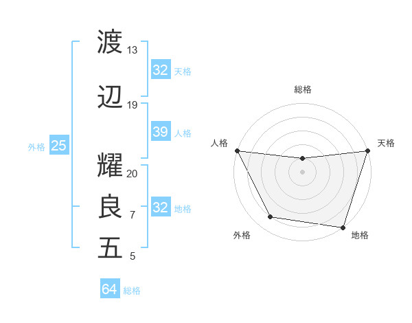 渡辺 耀良五さんを姓名の画数から五運を鑑定