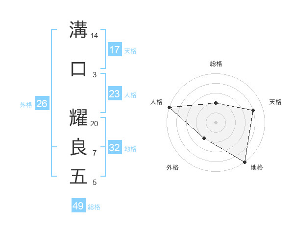 溝口 耀良五さんの地格は32画の5点!