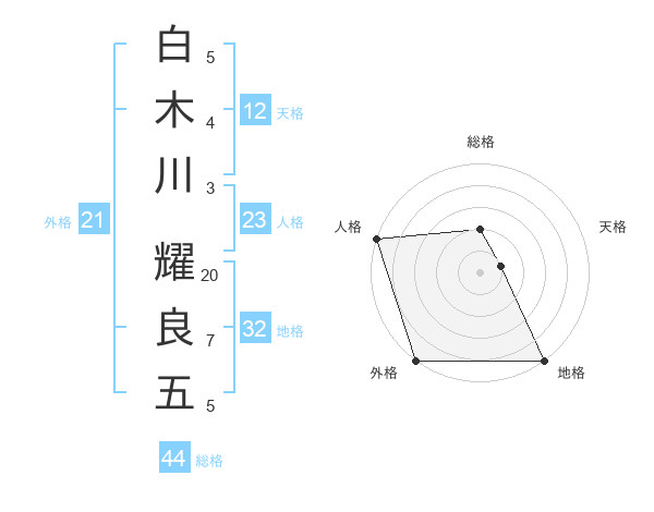 白木川 耀良五さんを姓名の画数から五運を鑑定