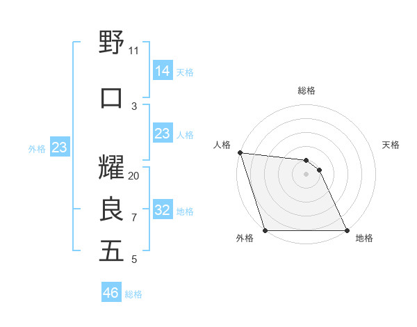 野口 耀良五さんを姓名の画数から五運を鑑定