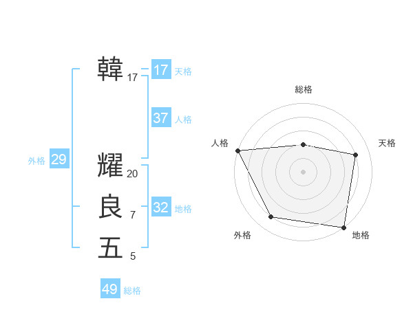韓 耀良五さんの人格は37画の5点!