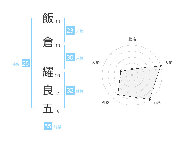 飯倉 耀良五さんの総格は55画の1点!