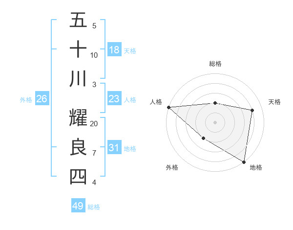 五十川 耀良四さんの総格は49画の2点!