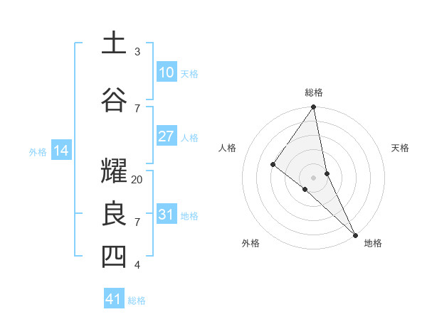 土谷 耀良四さんを姓名の画数から五運を鑑定