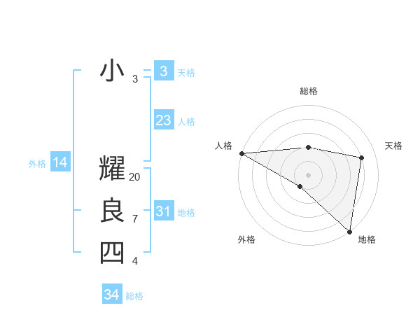 小 耀良四さんの人格は23画の5点!