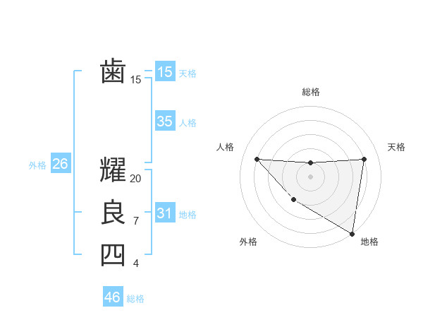 歯 耀良四さんの外格は26画の2点!