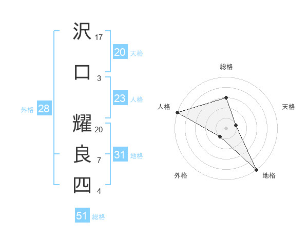 沢口 耀良四さんを姓名の画数から五運を鑑定