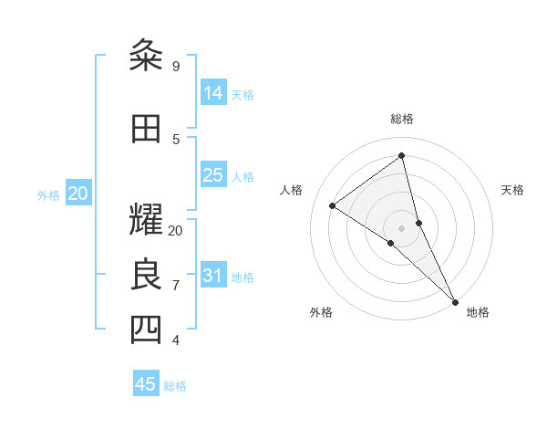粂田 耀良四さんを姓名の画数から五運を鑑定
