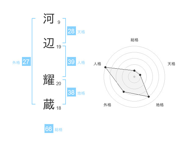河辺 耀蔵さんの総格は66画の1点!