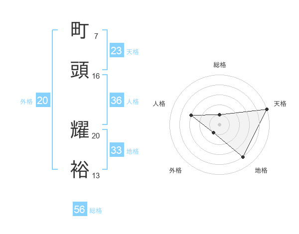 町頭 耀裕さんを姓名の画数から五運を鑑定