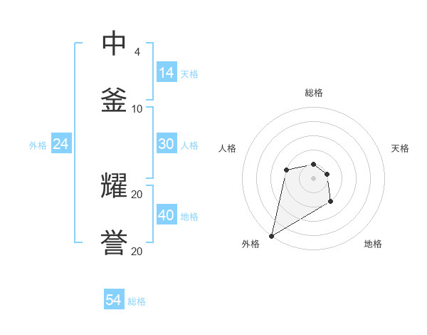 中釜 耀誉さんを姓名の画数から五運を鑑定