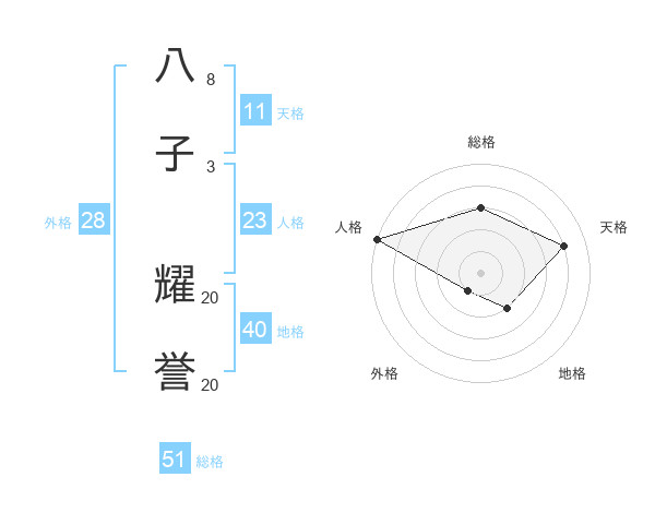 八子 耀誉さんを姓名の画数から五運を鑑定