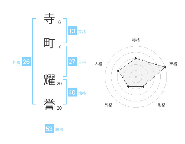 寺町 耀誉さんの天格は13画の5点!