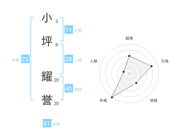 小坪 耀誉さんの外格は23画の5点!