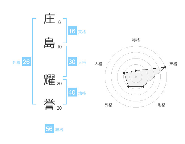 庄島 耀誉さんを姓名の画数から五運を鑑定
