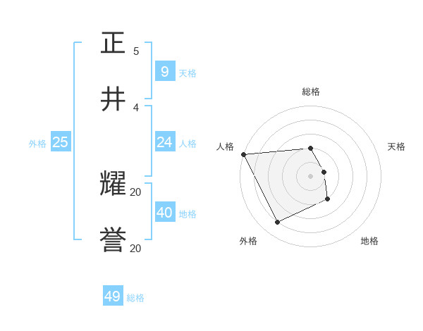 正井 耀誉さんの人格は24画の5点!