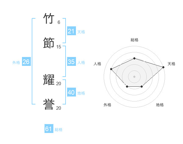 竹節 耀誉さんを姓名の画数から五運を鑑定