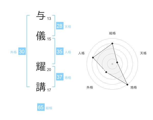 与儀 耀講さんの総格は65画の4点!