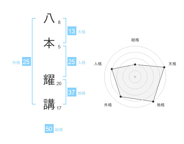 八本 耀講さんの総格は50画の2点!