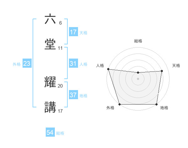 六堂 耀講さんの総格は54画の1点!