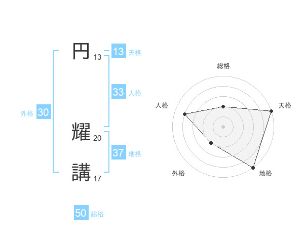 円 耀講さんの総格は50画の2点!