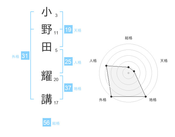 小野田 耀講さんを姓名の画数から五運を鑑定