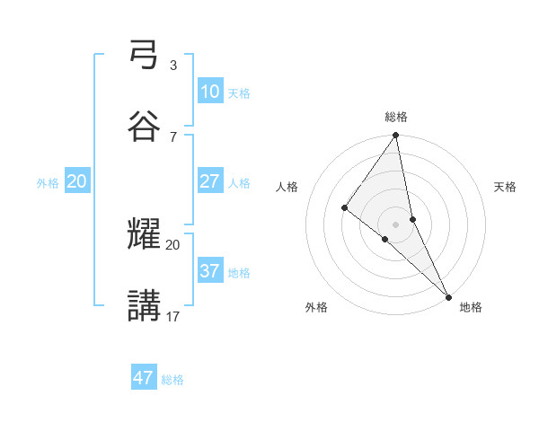 弓谷 耀講さんを姓名の画数から五運を鑑定