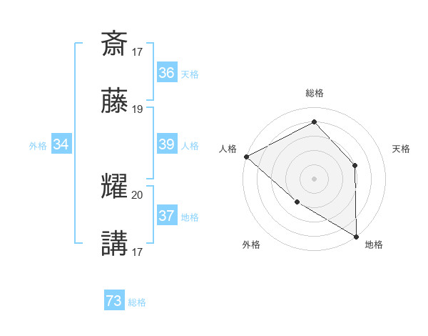 斎藤 耀講さんを姓名の画数から五運を鑑定