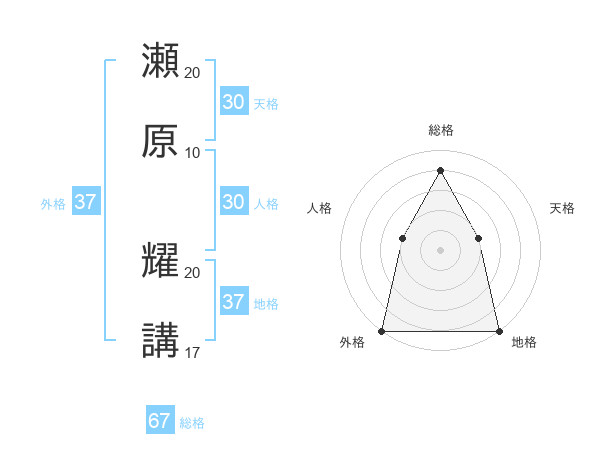 瀬原 耀講さんを姓名の画数から五運を鑑定