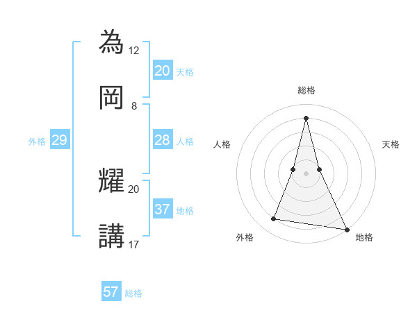 為岡 耀講さんを姓名の画数から五運を鑑定