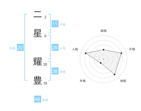 二星 耀豊さんの総格は49画の2点!