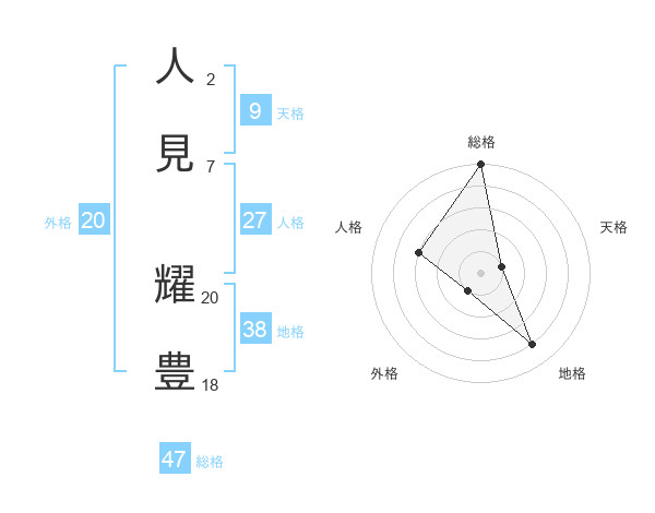人見 耀豊さんの総格は47画の5点!