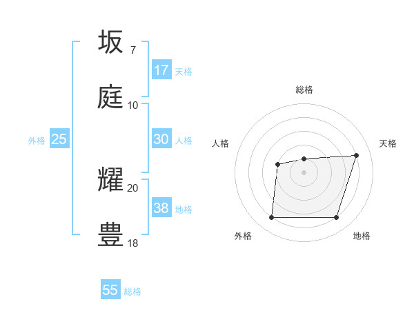 坂庭 耀豊さんを姓名の画数から五運を鑑定