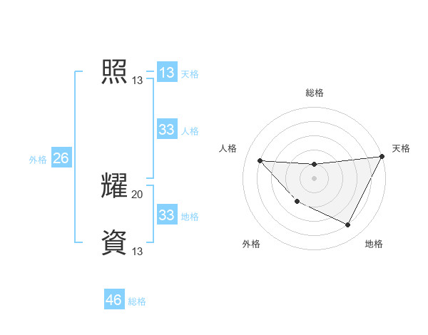 照 耀資さんの天格は13画の5点!