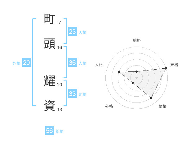 町頭 耀資さんを姓名の画数から五運を鑑定