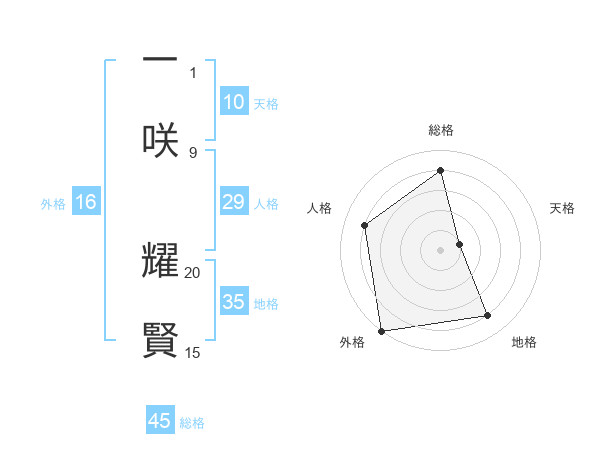 一咲 耀賢さんの総格は45画の4点!