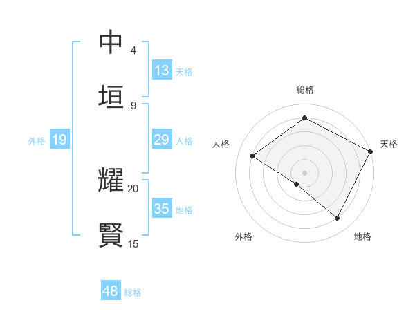中垣 耀賢さんを姓名の画数から五運を鑑定