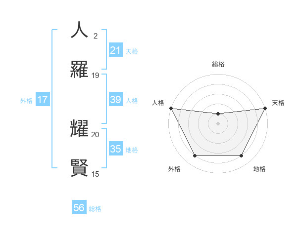 人羅 耀賢さんを姓名の画数から五運を鑑定