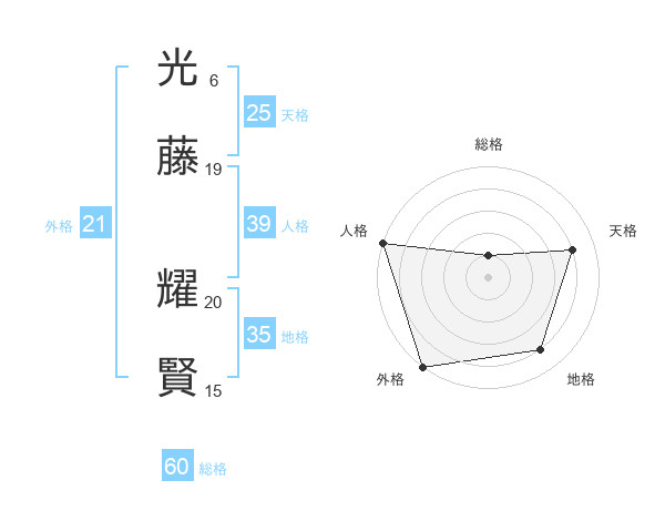 光藤 耀賢さんの天格は25画の4点!