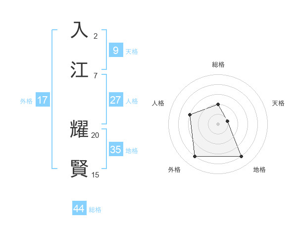 入江 耀賢さんを姓名の画数から五運を鑑定