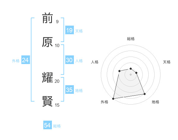 前原 耀賢さんを姓名の画数から五運を鑑定