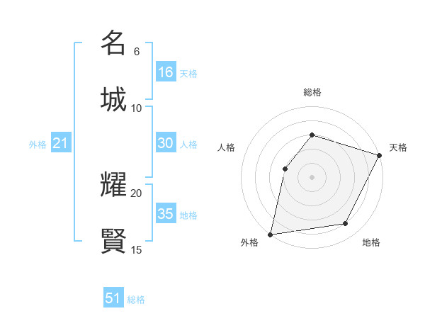 名城 耀賢さんを姓名の画数から五運を鑑定