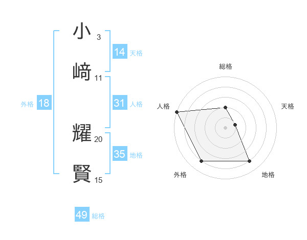 小﨑 耀賢さんを姓名の画数から五運を鑑定