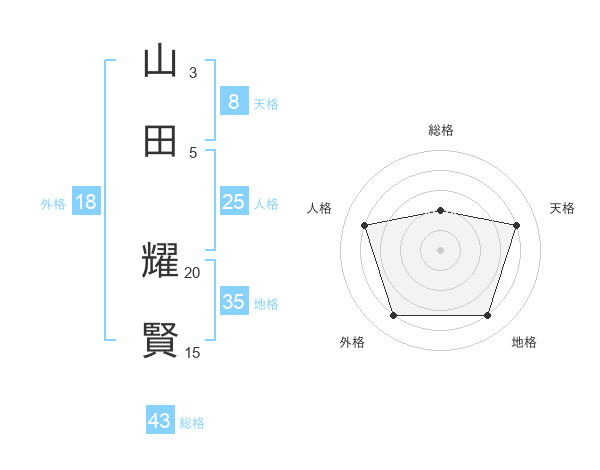 山田 耀賢さんの総格は43画の2点!