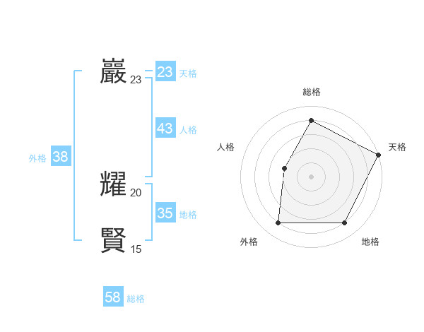 巖 耀賢さんの天格は23画の5点!